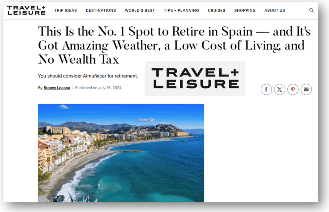 Considering a change of scenery? Spain offers stunning expat enclaves like AlmuƱƩcar, Nerja, and Torreviejaāall with zero wealth tax and a welcoming vibe.Ā