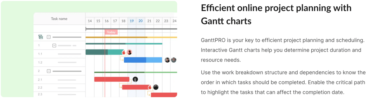 GanttPro is a straightforward project management software designed to simplify project planning, scheduling, and tracking through interactive Gantt charts, offering features like task management, resource allocation, and collaboration tools to enhance productivity and project visibility.