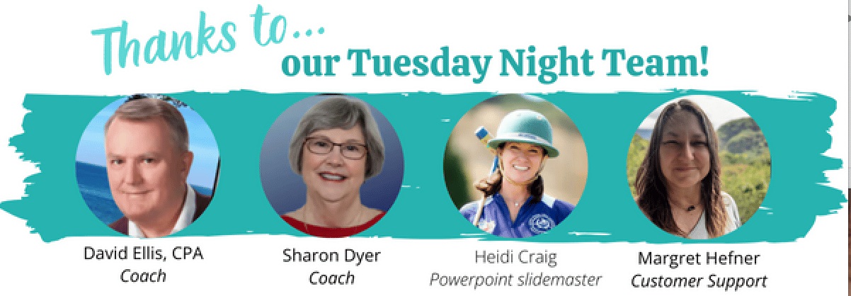 The Zoom room opens immediately following the Tuesday night webinar…. that’s around 6pm Pacific/ 9pm Eastern. We guarantee you a good time! Click here to get the link.